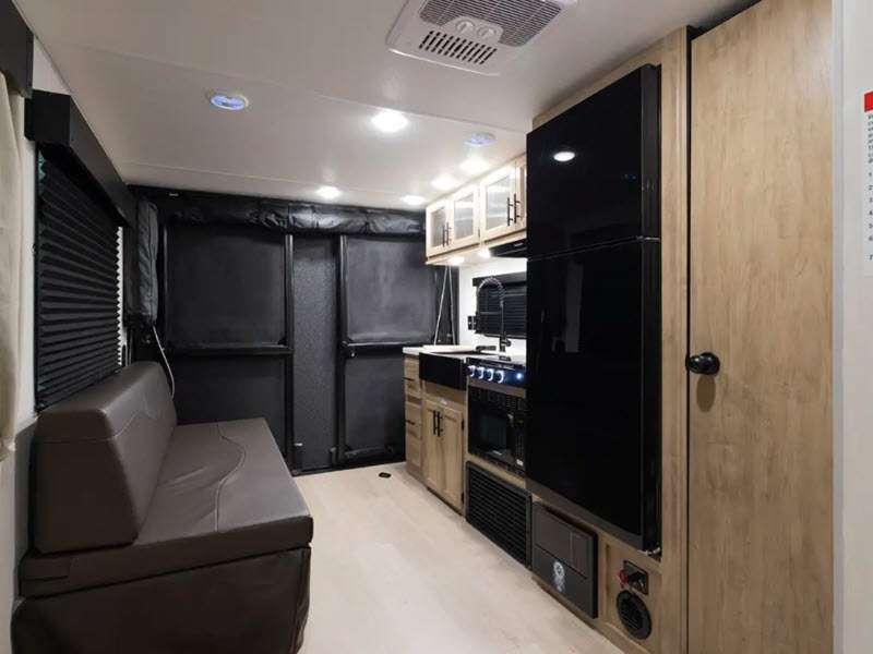 The Black Label brand differs from the standard Grey Wolf brand by including fiberglass gel coat sided walls, upgraded solid surface countertops, and upgraded reading lights. The exterior conveniences will make camping that much easier, and you'll fall in love with the cozy interiors.