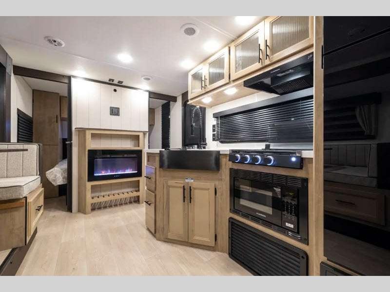 Sleeps 4 Slides 1 Length 30 ft 11 in Ext Width 8 ft Ext Height 10 ft 6 in Int Height 0 ft Hitch Weight 700 lbs GVWR 7700 lbs Dry Weight 6183 lbs Cargo Capacity 1517 lbs Fresh Water Capacity 52 gals Grey Water Capacity 38 gals Black Water Capacity 38 gals Furnace BTU 20000 btu Available Beds RV King Refrigerator Type 12V Cooktop Burners 3 Number of Awnings 1 Water Heater Type Tankless AC BTU 15000 btu Cargo Deck Size 0 ft Awning Info 15' Full Length Power w/LED Light Strip Axle Count 2 Shower Type Tub/Shower Combo Solar Wattage 200 watts Similar Floorplans