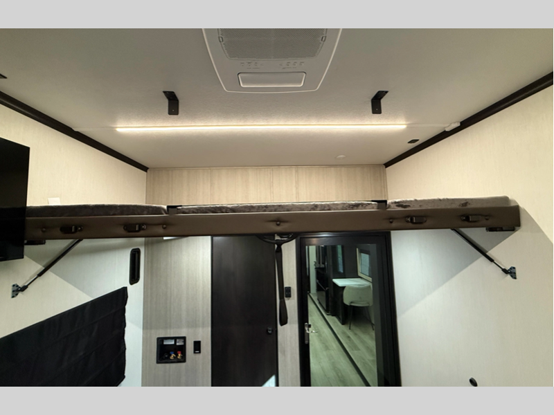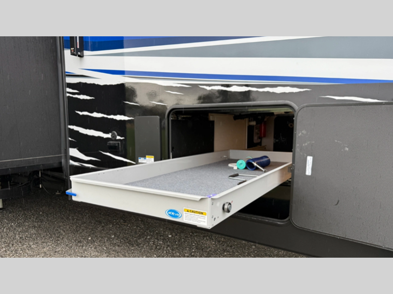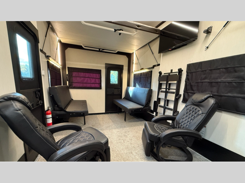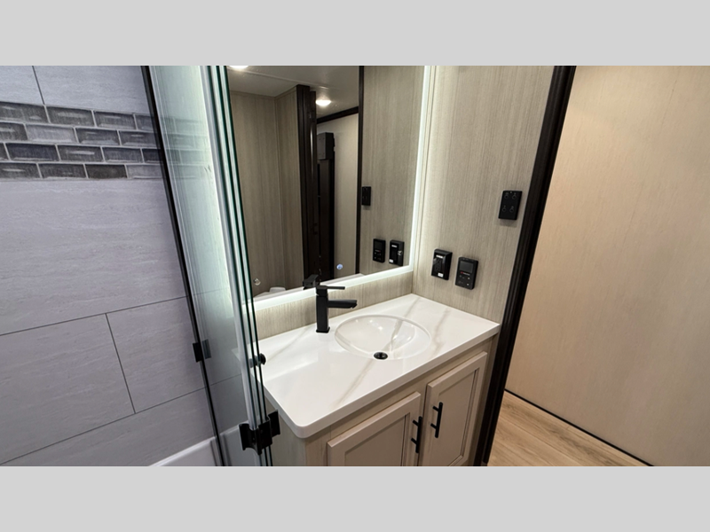 The standard MORryde suspension and hitch plus Goodyear Endurance radial tires will provide a smooth tow from home to campground, and the 6-point hydraulic leveling system will have you set up in no-time! An on-board generator and 600-watt solar system will keep you powered up, and a 30-gallon fuel station lets you fill up and head out whenever the adventure calls. You'll find many interior comforts as well, including luxury upgraded furniture and solid surface countertops throughout, plus a spa shower system in the master bath and upgraded king mattress!