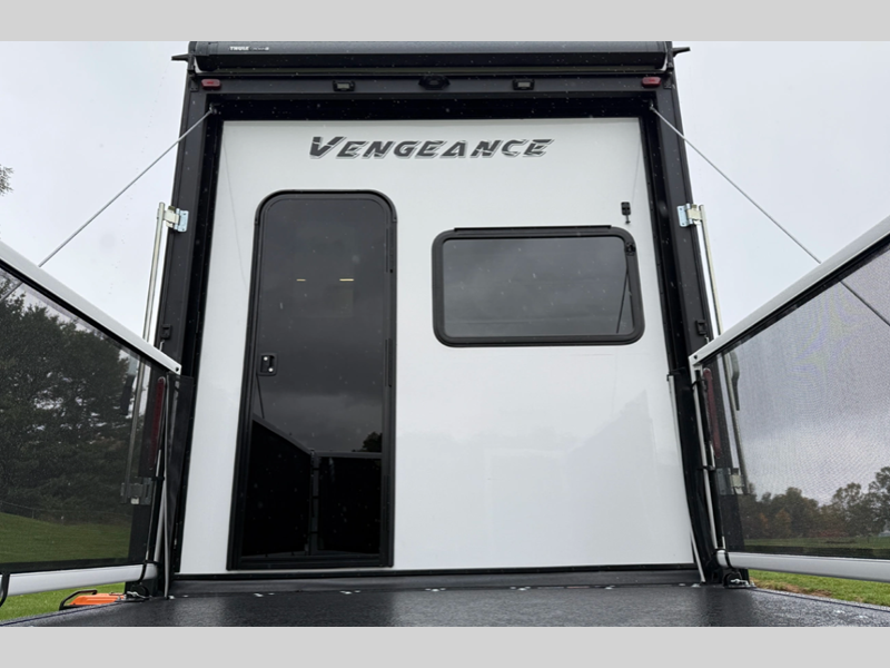 The Cherokee Vengeance toy hauler fifth wheels by Forest River provide the perfect balance of refined comfort and a high-capacity garage able to withstand your adventures!