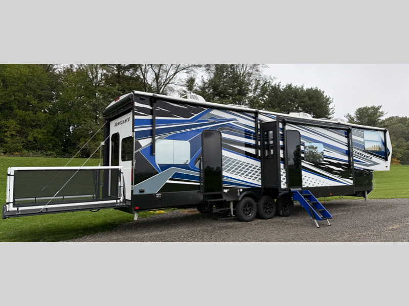 The outdoor enthusiasts have met their match with the Cherokee Vengeance toy hauler fifth wheels by Forest River; choose yours today!