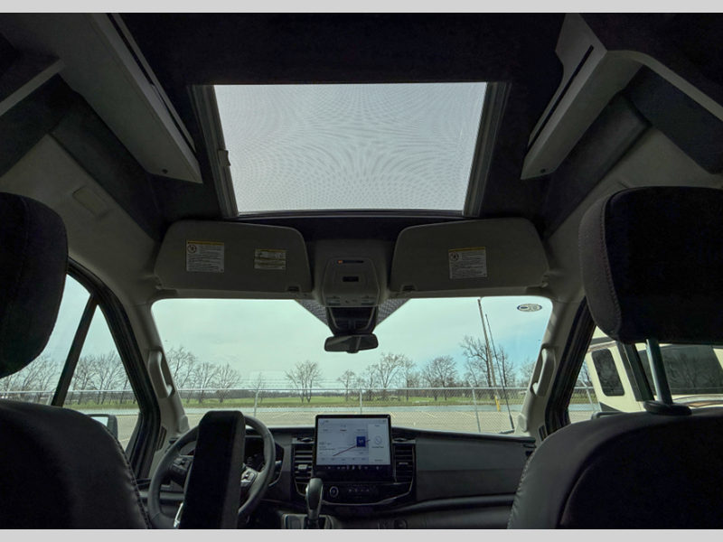 There is also a 10-speed transmission, a SYNC 4 system, adaptive cruise control, plus connected navigation and 360-degree camera the driver is sure to appreciate. You will stay powered up with a 51V Lithionics battery, 3,000W inverter, and two 180W solar panels. The interior is just as impressive with its double-pane acrylic skylight, integrated blackout shades and screen, and sleek porcelain countertop in the kitchen.
